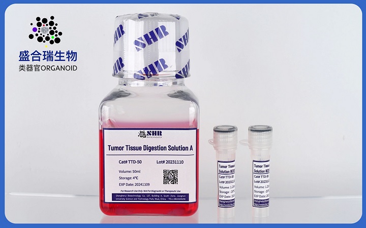 肿瘤组织消化液可将肿瘤组织样本温和、快速地消化解离为细胞悬液或细胞团块,可用于后续类器官的构建。该组织消化液广泛适用于实体肿瘤 (如肠癌、胃癌、食管癌、肺癌、乳腺癌等) 及正常组织标本在体外原代培养前的消化解离。